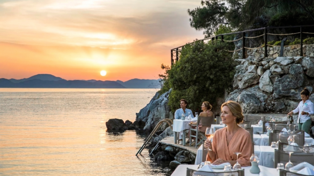 Wat deze plek zo uniek maakt, is de natuurlijke amfitheater-vormige ligging. Het resort is terrasgewijs tegen de heuvels opgebouwd, omringd door weelderige, smaragdgroene dennenbossen die doorlopen tot aan de Egeïsche zee. Hierdoor heb je vanuit vrijwel elke hoek van het resort een adembenemend en onbelemmerd uitzicht over het water. Je voelt je hier één met de natuur, maar dan wel met alle denkbare luxe binnen handbereik.